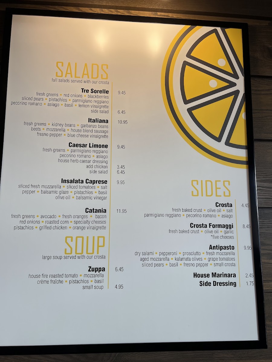 Must-tries include the Pera and Viola pizzas, both praised for their fresh taste and inventive ingredients. The Italiana Salad is a standout as well, featuring crisp greens, flavorful Italian sausage, and a creamy blue cheese dressing. And don’t miss their signature Crosta, a delicious, fresh-baked crust accompanied by a rich blend of cheeses.
